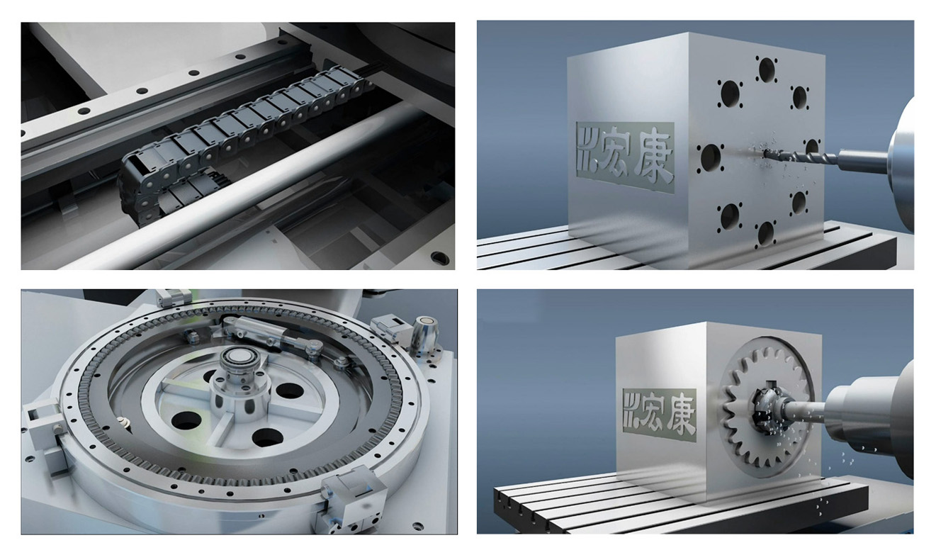 2、超短圓柱(zhù)滾動回轉(zhuǎn)工(gōng)作(zuò)台專利(專利號:ZL 2010 1 0281167.1)技術,使工作台支(zhī)撐能力和可靠(kào)性顯著(zhe)提(tí)高。3、各(gè)坐標軸伺服進給裝置全部采用交流伺服電機驅動(dòng)、應用預緊式滾珠絲杠、專用角(jiǎo)接觸成組軸承支撐(chēng);4、上滑座、立柱采用直線導(dǎo)軌結構,精度高(gāo),便於(yú)安裝調(diào)試。5、主軸箱采用氮氣(qì)平衡係統,更加穩定、可靠、安全。6、拖鏈內置技術,有(yǒu)效保護管路(lù)運行係統、減(jiǎn)少故障率,提高(gāo)整體美觀度。