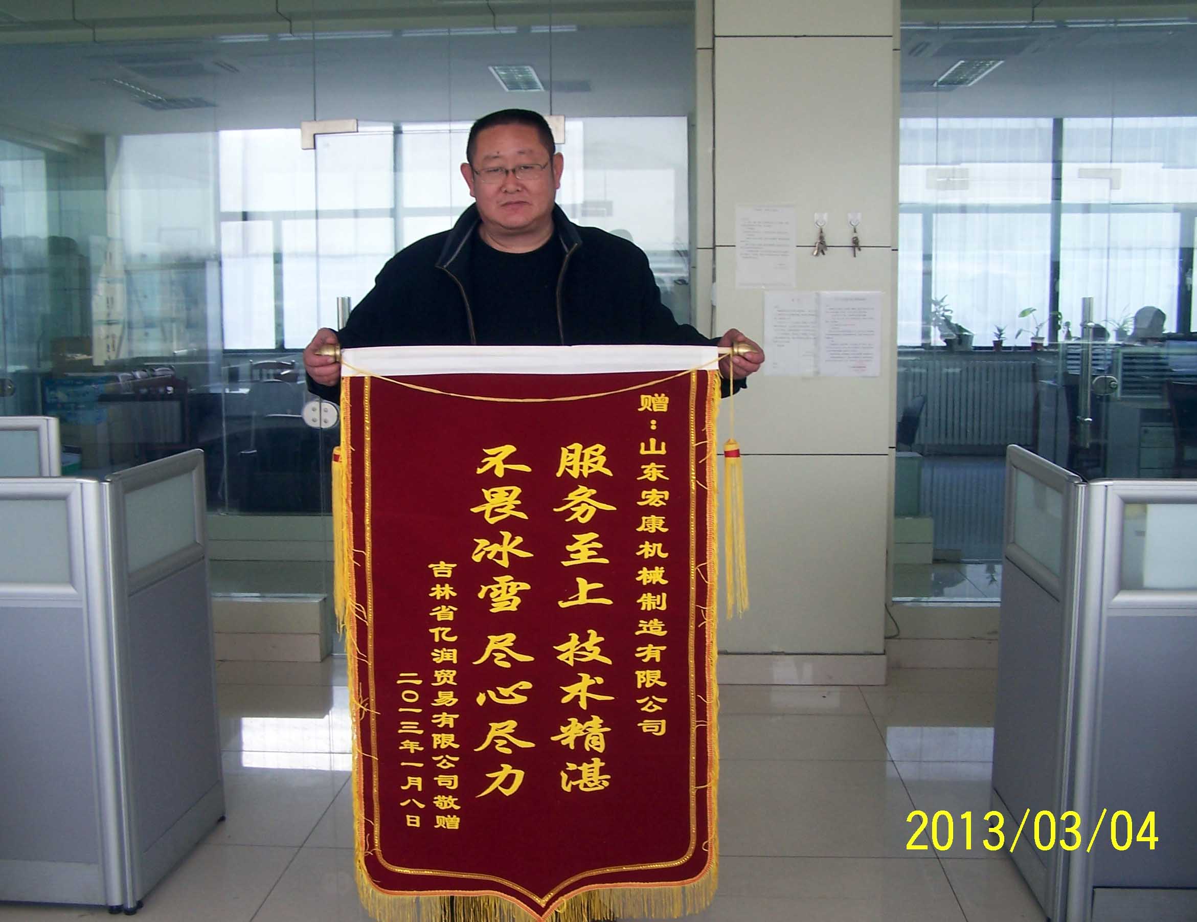 新年伊始,集團公司迎(yíng)來了一份不同尋常的殊榮:吉林省億潤貿易(yì)有限公司寄(jì)來了一麵書有“服務至上,技術精湛,不畏冰雪,盡心盡力(lì)” 大字的錦旗,對銷(xiāo)售公(gōng)司安裝服務人員提出(chū)了高度的讚揚(yáng)。紅布黃字,看(kàn)似普普通通的一麵錦旗,背後卻是集團公司售後團隊戰(zhàn)嚴寒鬥冰雪、哪裏需(xū)要就哪裏(lǐ)去的堅持與付出精神的真實寫照。