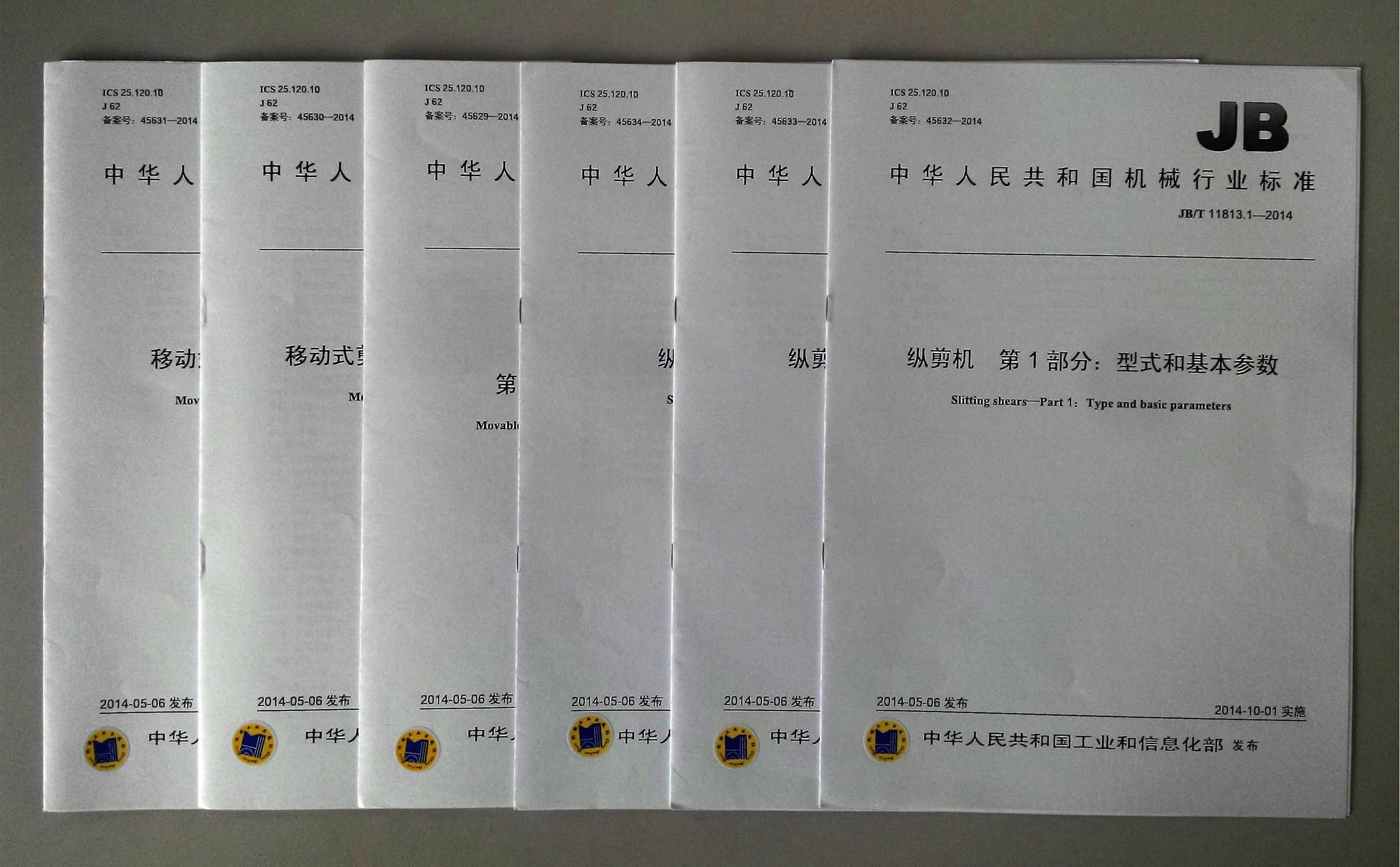 近(jìn)期,集團公(gōng)司負責製訂的有關縱剪機、移動剪板機的6項國家行業標(biāo)準由工信部頒布,2014年10月1日正式實施。
