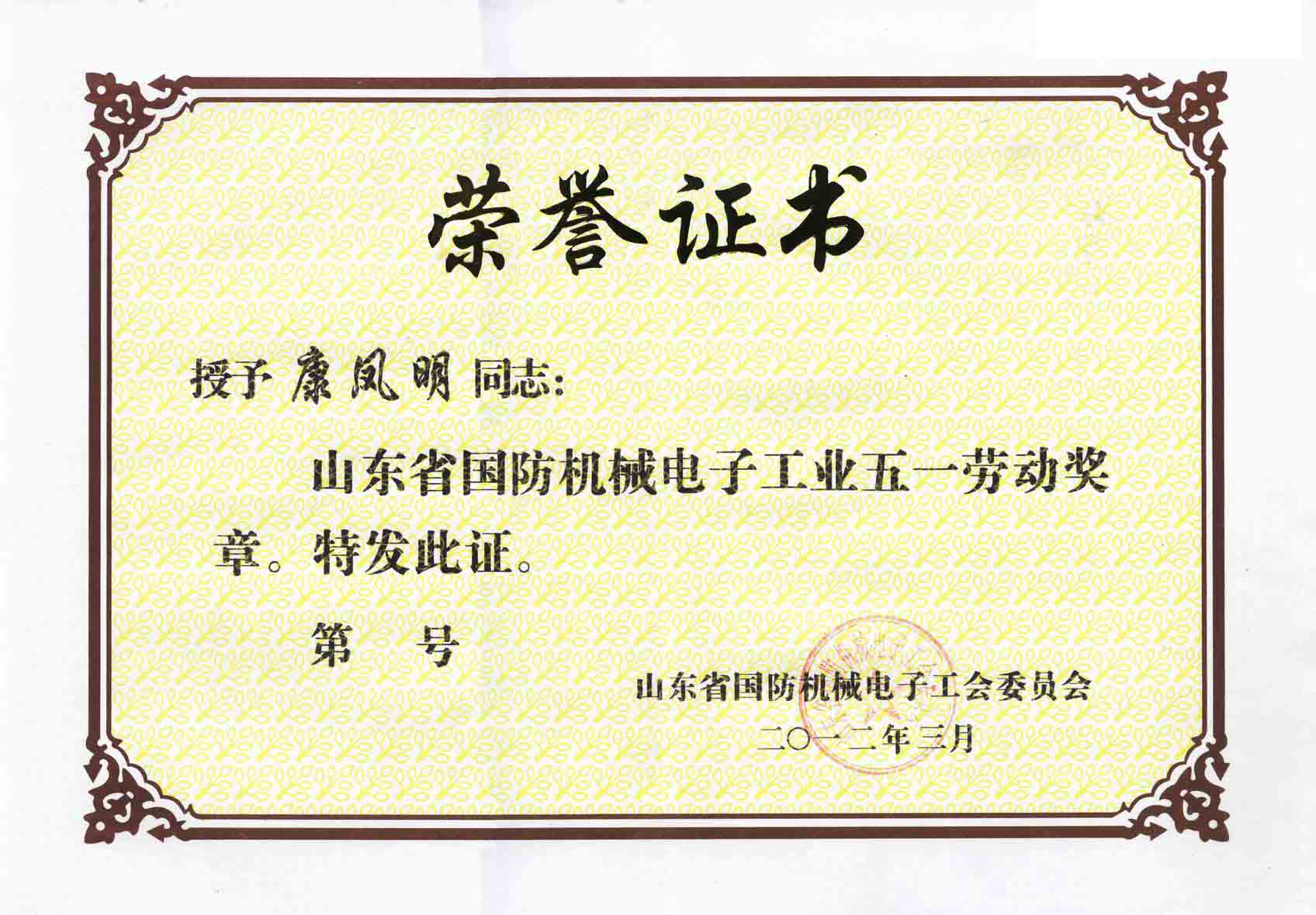 3月(yuè)29日,山東省國(guó)防機械電子工會二(èr)屆二(èr)次全委會暨女職委一(yī)屆四次會(huì)議在濟南勝利召開。會議隆重表彰了山東省國防機械電子工業“五(wǔ)一”勞動獎狀(zhuàng)(章)先進集體和個人,授予38個單位(班組)勞動獎狀,61名同(tóng)誌勞動獎章。集團董事長、總經理康(kāng)鳳明榮獲“五一”勞動獎章(zhāng)。