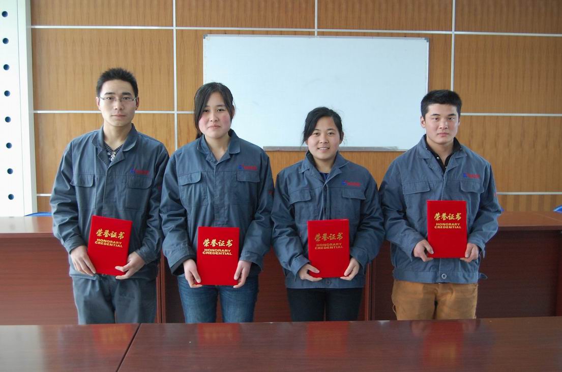 近日,2010年(nián)度“泰安市岱嶽區技術能手”名單公布,全區共有10名職工獲此(cǐ)殊榮,我公(gōng)司李海泉、朱倩倩、溫玉敬、田(tián)誌華(自左至(zhì)右)四名員工名列其中。