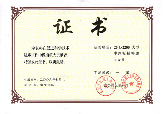 9月28日,全省機械工業科技創新與(yǔ)信息化工作會議在濟南召開,來自全省機械行業的近(jìn)100名代表參加了會議。公司副總經理(lǐ)朱洪臣(chén)代表公司參加會議,並上台領取了獲獎證書(shū)。我公(gōng)司一次申報的四項技術(shù)成(chéng)果全部獲獎,其中,“25.4×2200大型中厚板精整成套設備(bèi)”獲一等獎;“T44-0.3~4×1650數控開卷矯平(píng)剪切生(shēng)產線”和“板材開卷矯平剪切生產線”(標準)獲二等獎;“TX160型落地鏜銑床”獲(huò)三等獎,開創了省機(jī)械工業協會(原省(shěng)機械廳、省機械工業辦公室)和省機械工業科學技術協會的科技進(jìn)步獎評審曆史的先河。