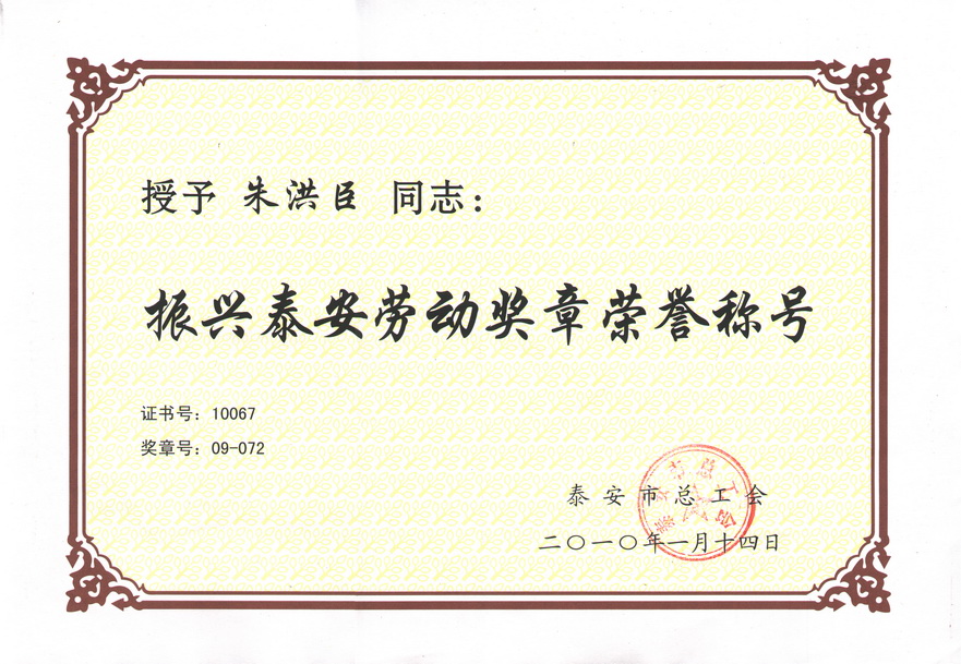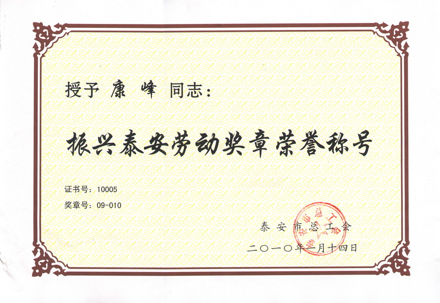 公司被授予“泰安市AAA級勞動關係和諧企業”稱號