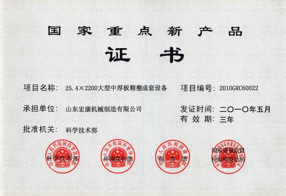 我公司研製的“25.4X2200大型中厚板精整成套設備”被科(kē)學技術(shù)部、環境保護部、商務部、國家質量監督檢驗檢疫總局聯合認定為國家重點新產品。
