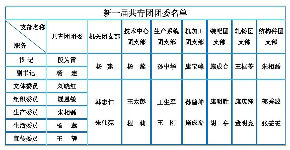 新一屆(jiè)團委成員表示:在以後的(de)工(gōng)作(zuò)中會盡心盡力(lì)的工(gōng)作,豐富大家的業餘生活,盡(jìn)可能地幫助大家,克服各種困難,使個人的成長與公司的發展實現有機結合。